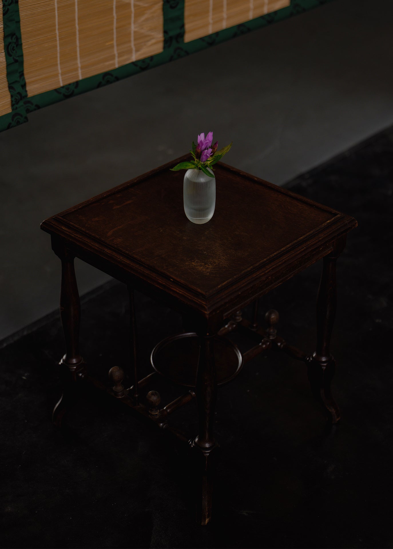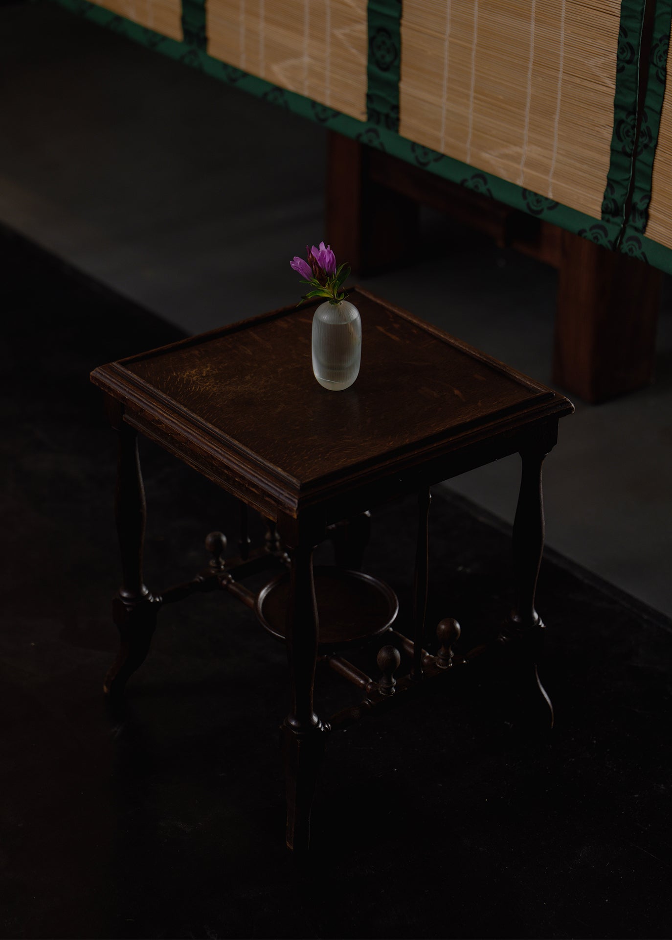 A high-quality antique display table that conveys the elegant rhythm woven by the spirit of a craftsman.