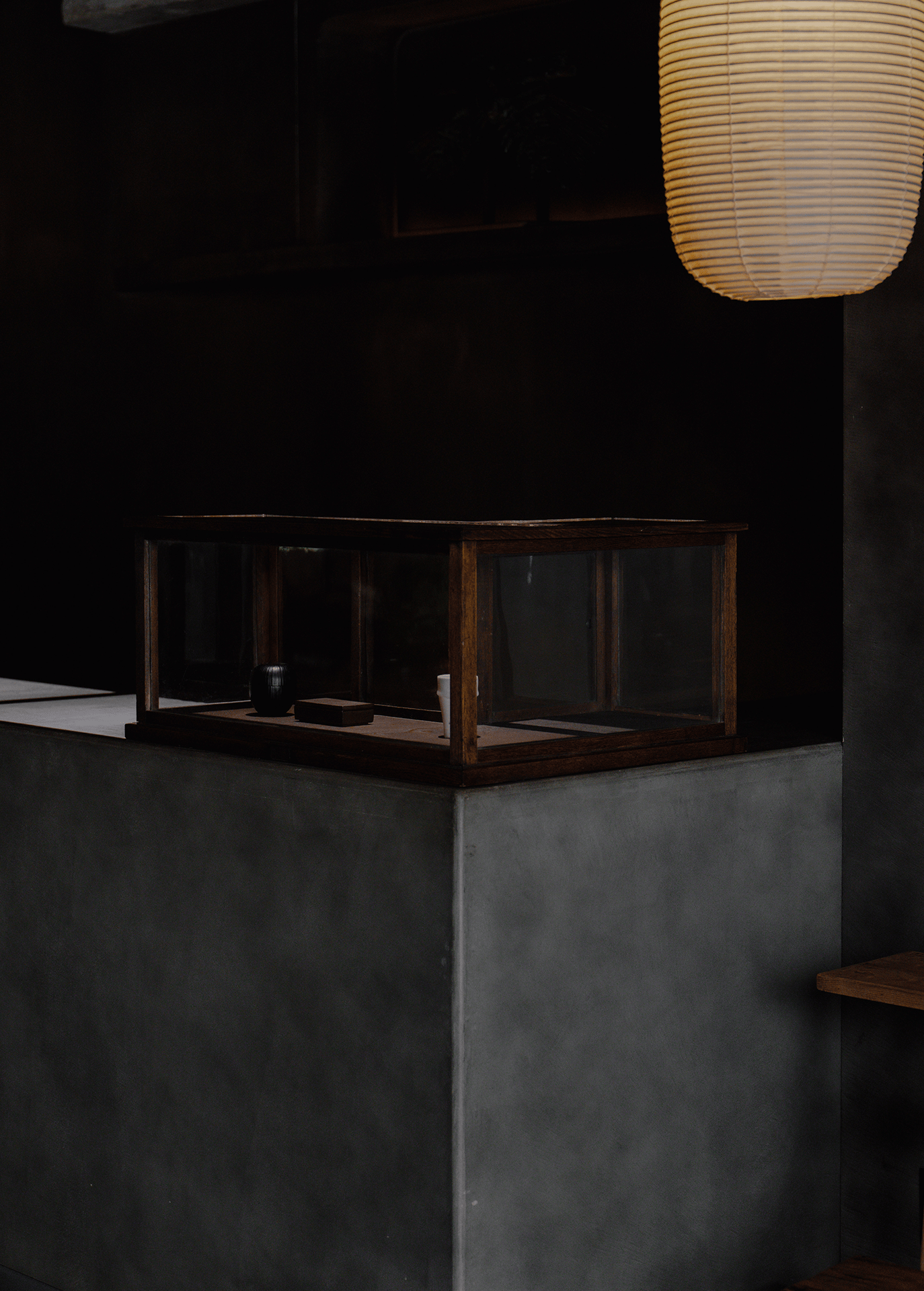 The beauty of the straight lines and the deep luster of the lacquer harmonize to add a tranquil yet vibrant color to the space.