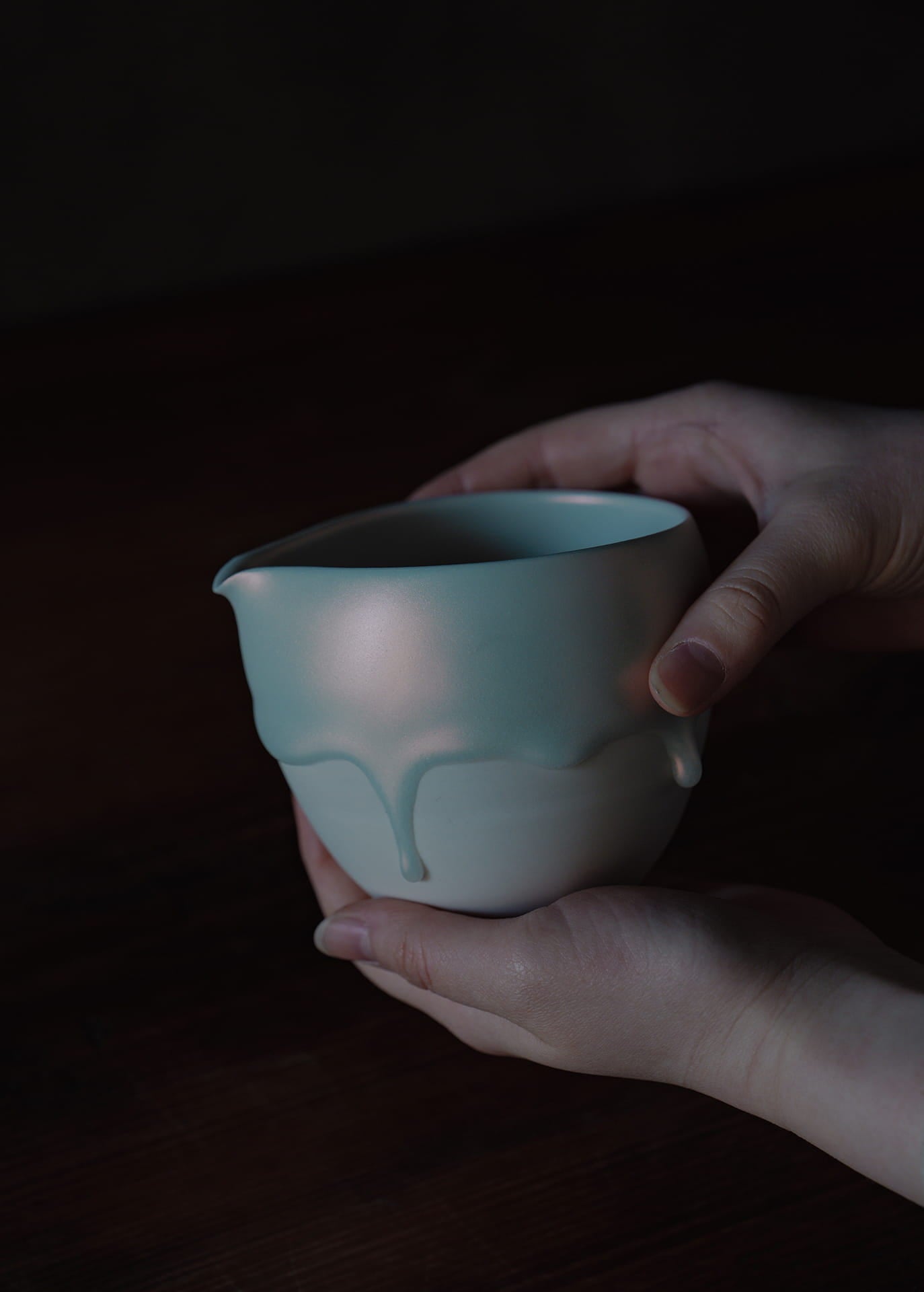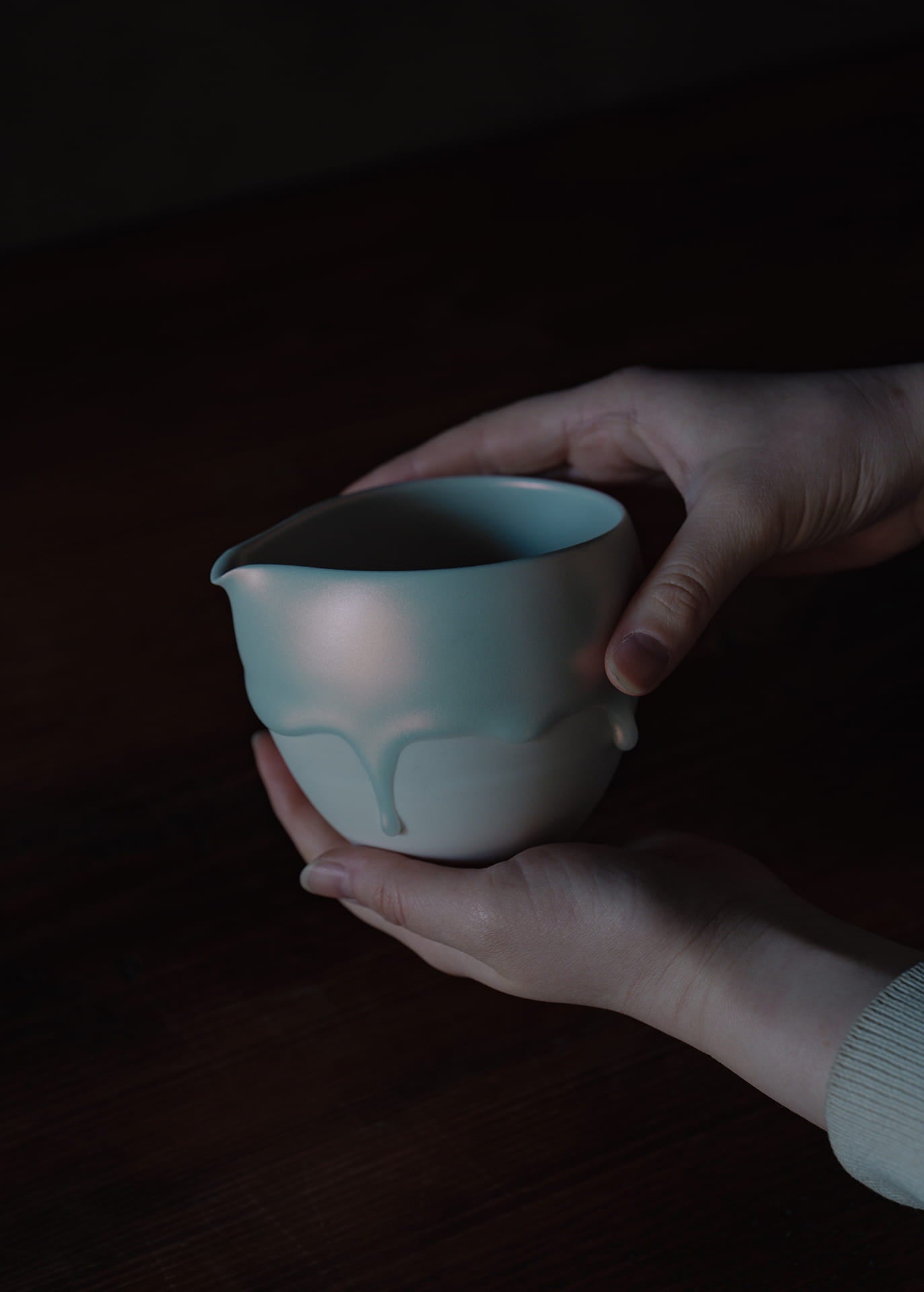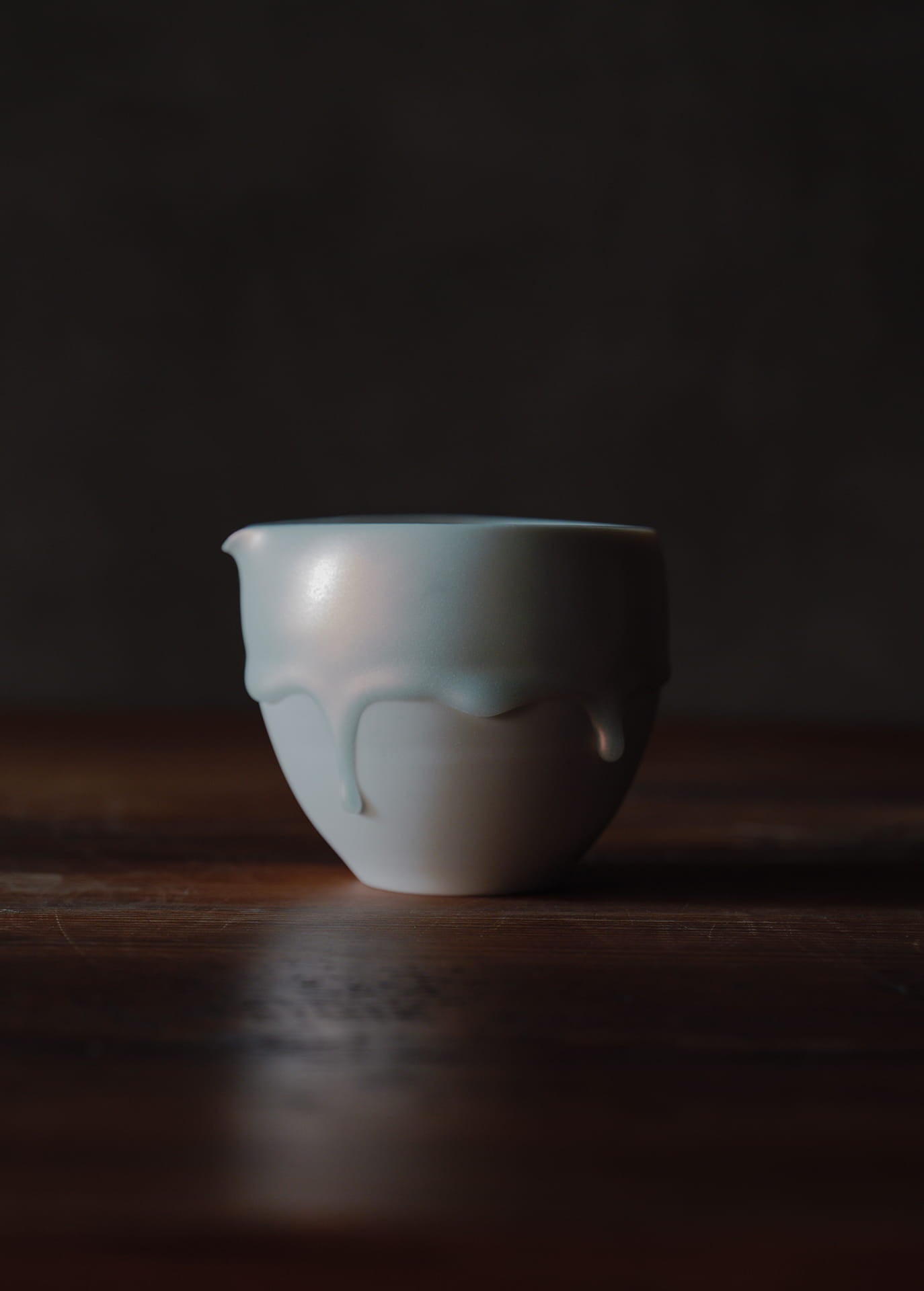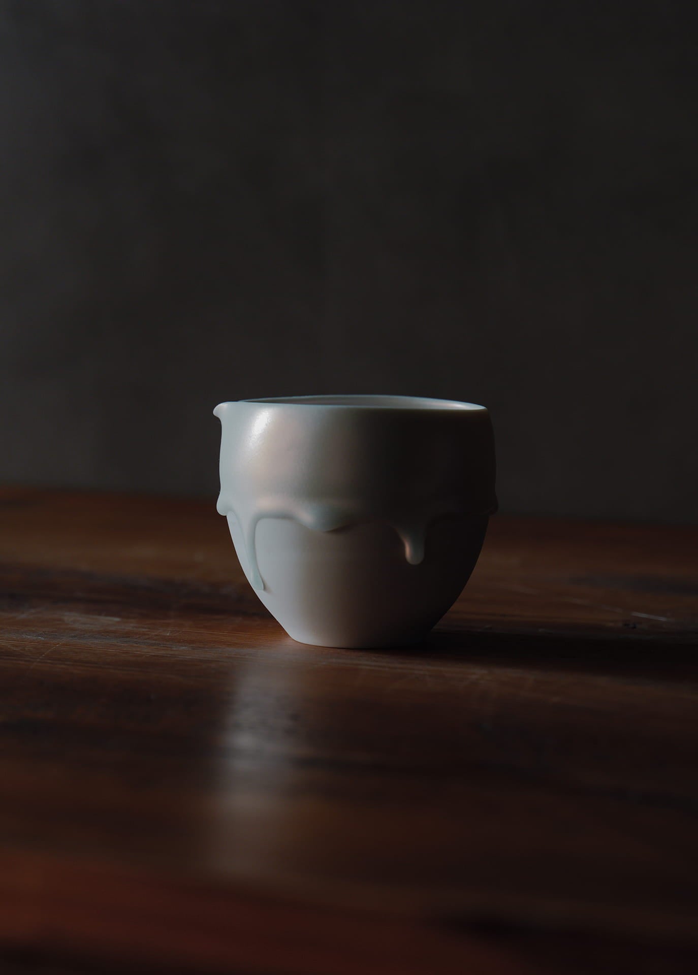 磁器土を主体とする陶芸家であり、「時間の化石」というコンセプトのもと活動しています。作品の特徴は、焼成中に生じる粘土の歪みや釉薬の流動といった自然現象をそのまま取り入れる独自のスタイルです。この過程により、時間が形を与えたかのような動きや表情が生まれます。また、朝露や溶けゆく氷のような儚い瞬間を表現し、日常使いの器でありながら、自然の変化を感じ取れるシンプルで奥深い美しさを持つ作品です。