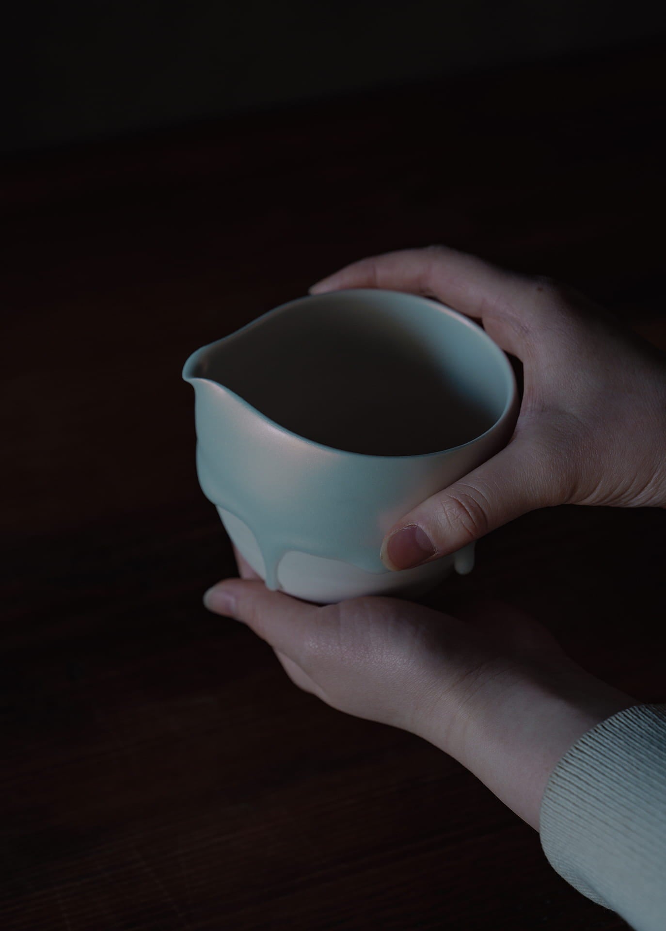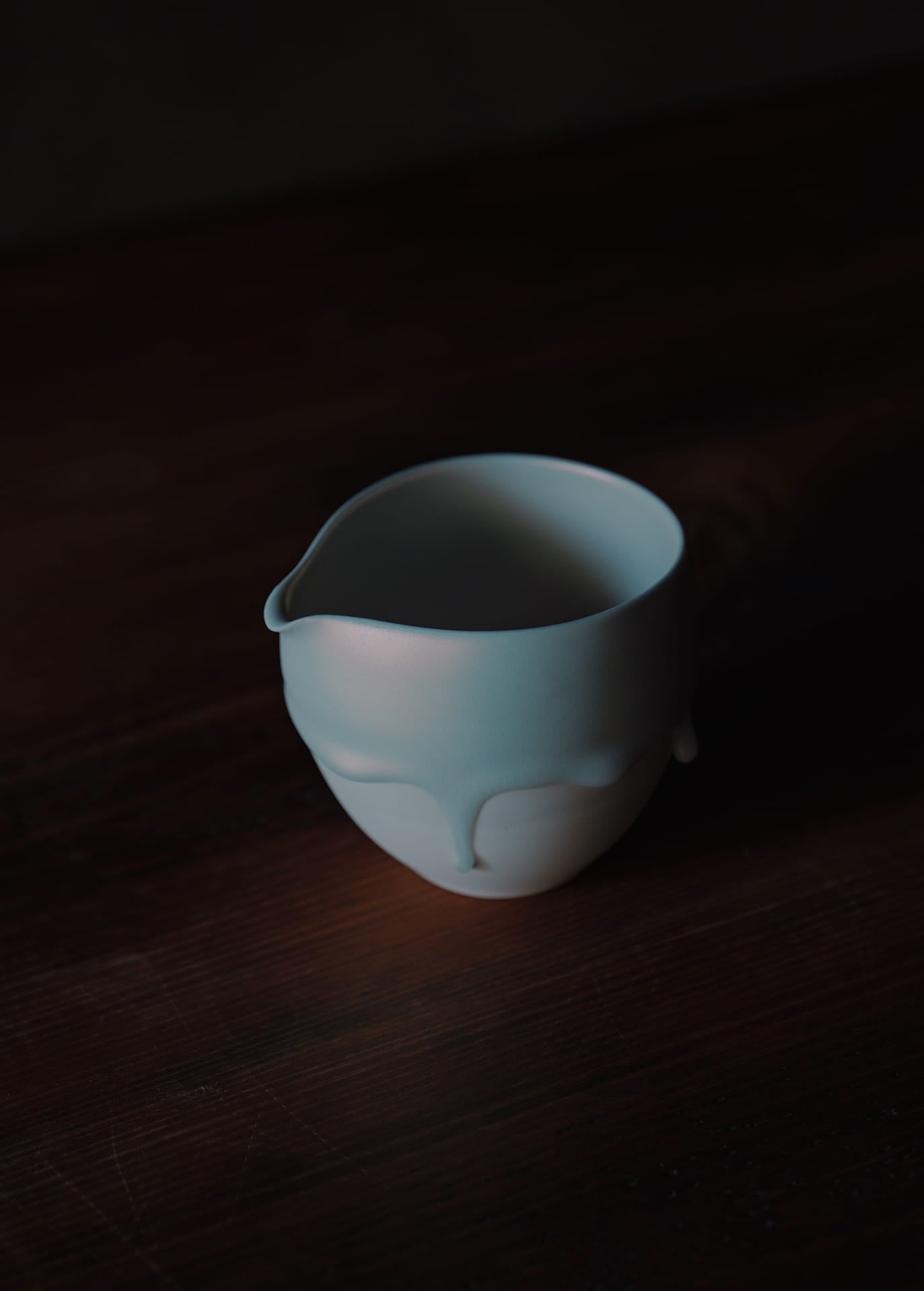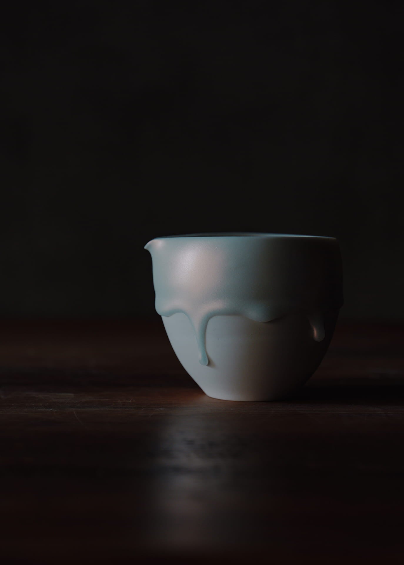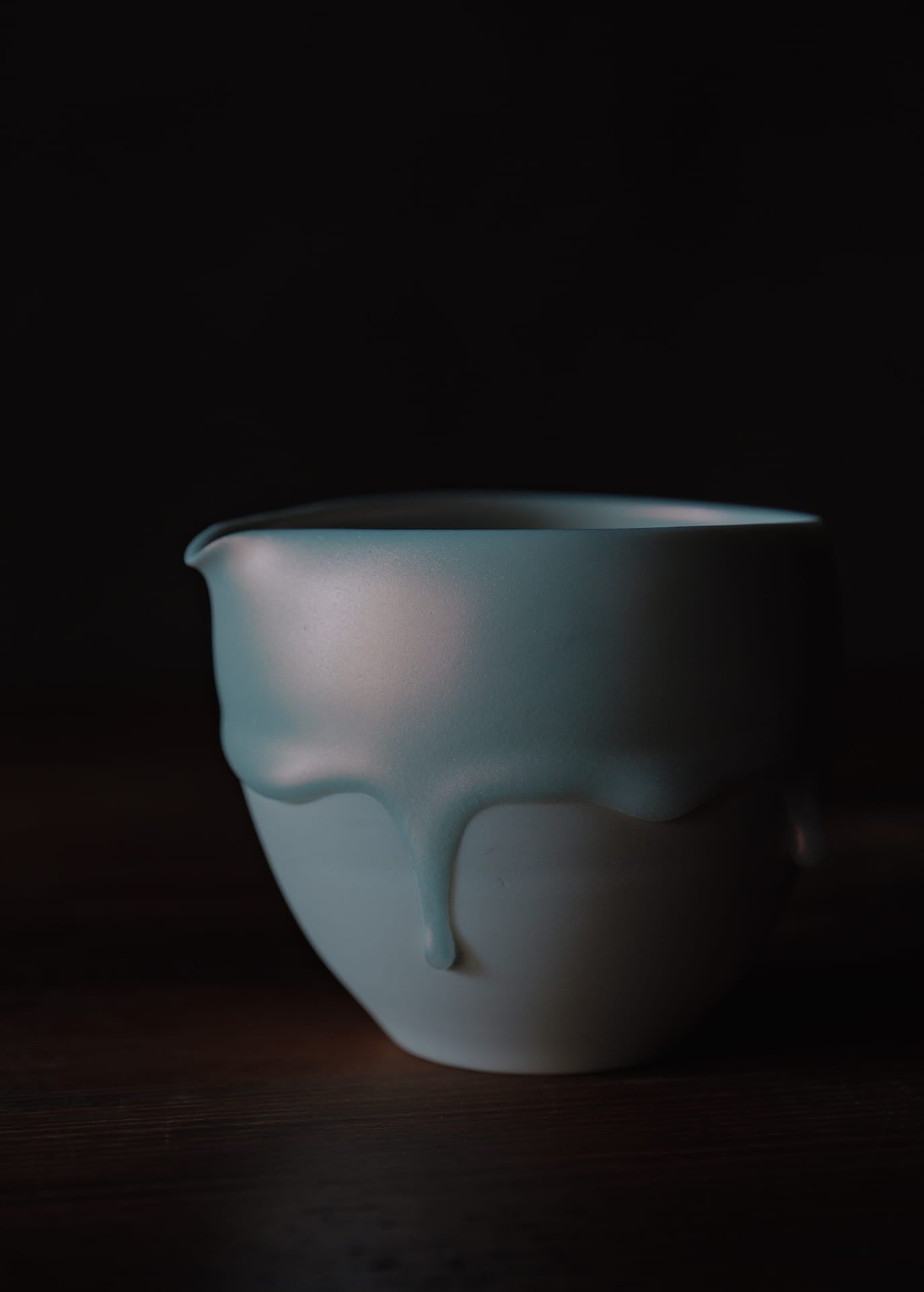 磁器土を主体とする陶芸家であり、「時間の化石」というコンセプトのもと活動しています。作品の特徴は、焼成中に生じる粘土の歪みや釉薬の流動といった自然現象をそのまま取り入れる独自のスタイルです。この過程により、時間が形を与えたかのような動きや表情が生まれます。また、朝露や溶けゆく氷のような儚い瞬間を表現し、日常使いの器でありながら、自然の変化を感じ取れるシンプルで奥深い美しさを持つ作品です。