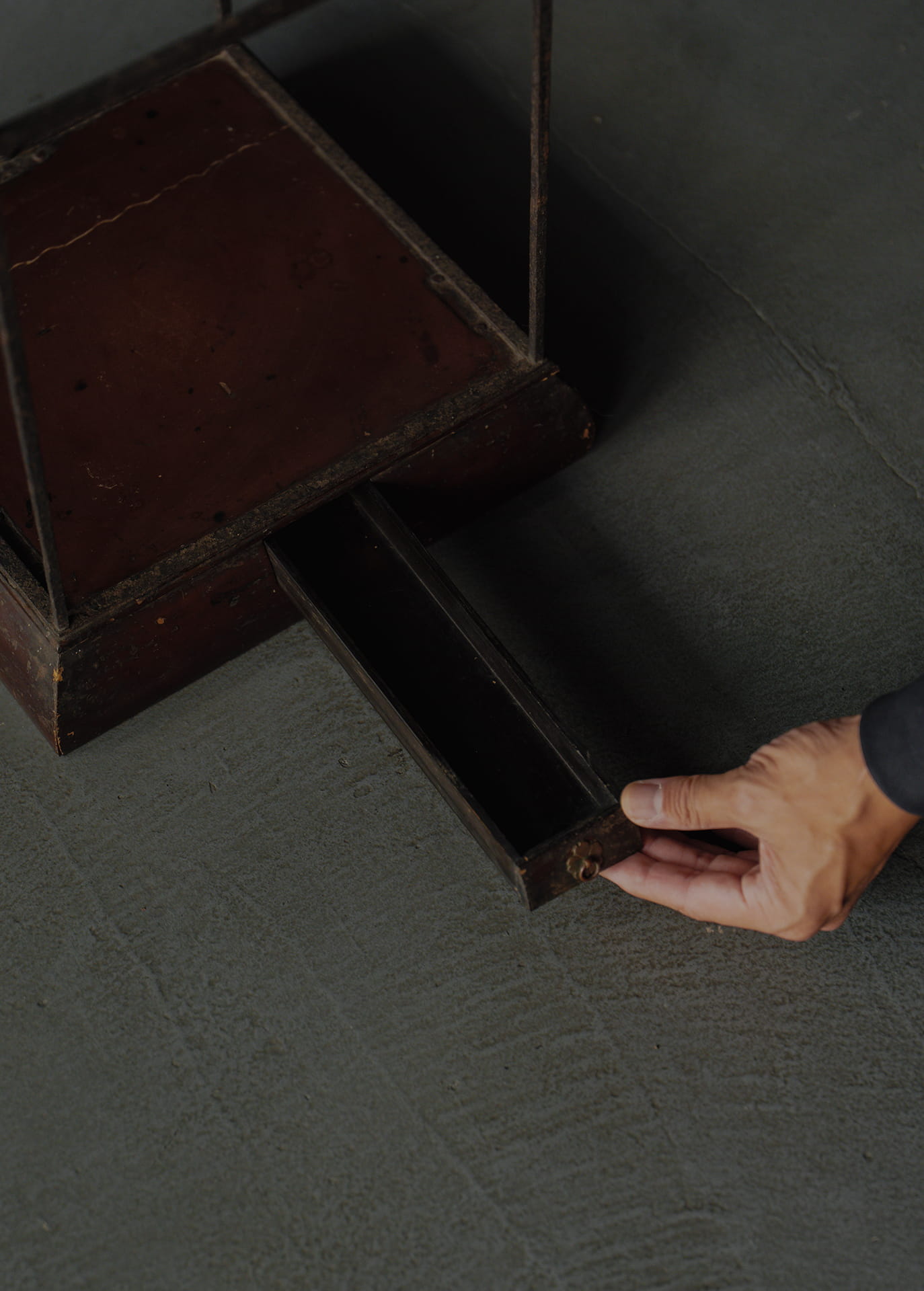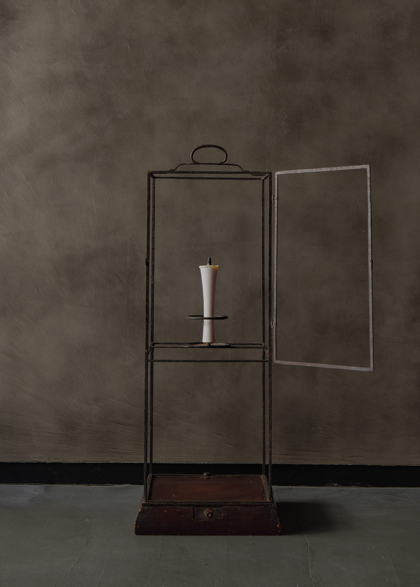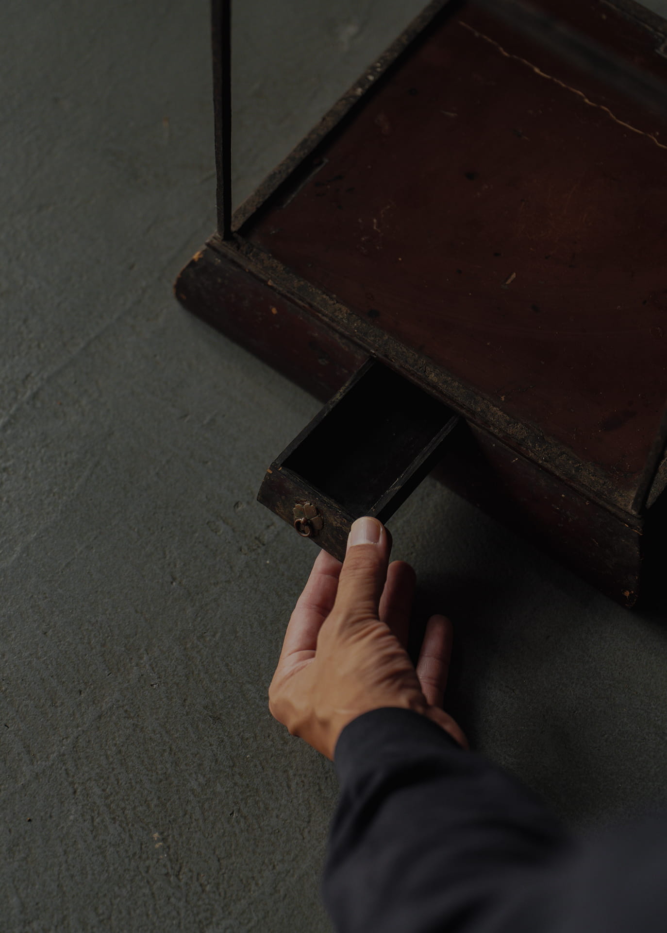 台座の引き出しには予備の蝋燭や芯切り鋏を納めることができ、先人の暮らしの知恵をそのままに愉しめる実用性も備えています。唯一無二の稀少な一点物として、あなただけの夜を豊かに彩る一生の伴侶に。炎の揺らぎと共に流れる贅沢な時間を、ぜひお手元でご体感ください。